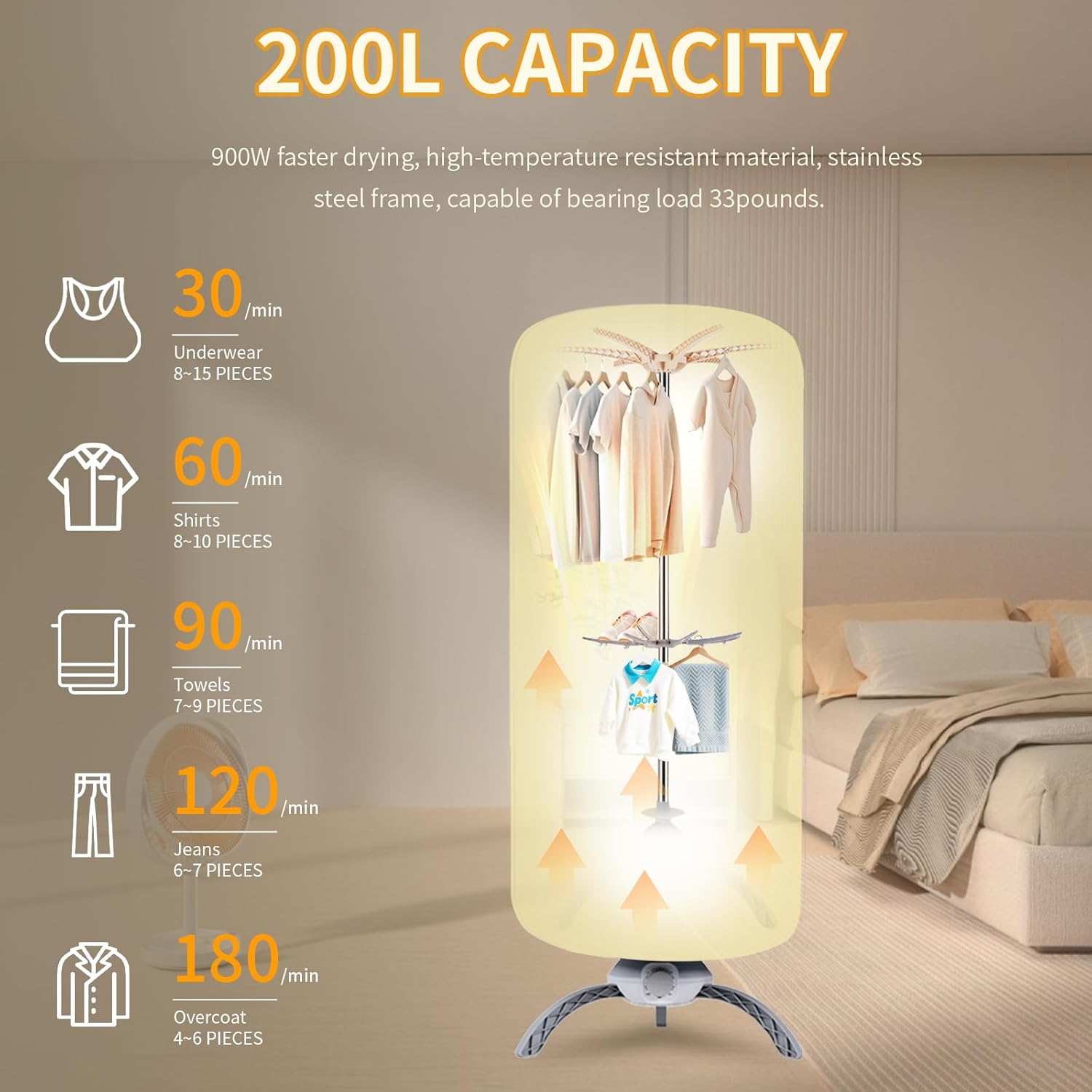 【Portable Design】Perfect for apartments, RVs, and travelers, the Portable Dryer is a compact powerful solution for drying light clothes, underwear, and baby clothes. This mini machine features a timer function for precise control, ensuring your garments are dried efficiently without overuse.
