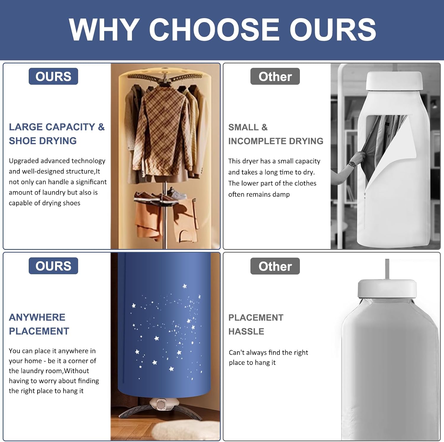 【Versatile Application】Electric clothes dryer Suitable for drying all kinds of items, from large – sized coats to small – sized baby clothes and various shoes, meeting all your drying needs.