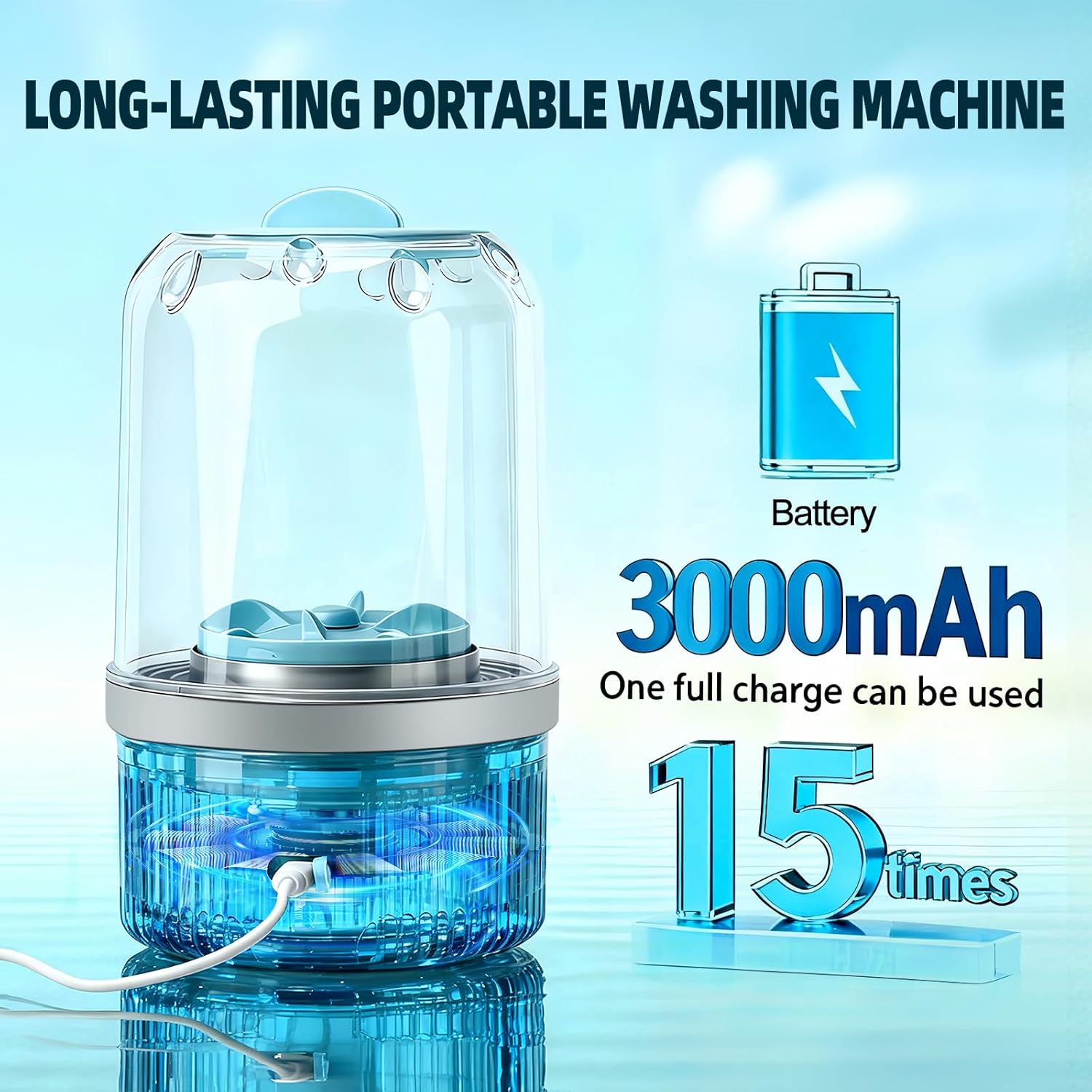 Experience the ultimate convenience of cordless washing with our Mini Portable Washing Machine. With a 3000mAh built-in rechargeable battery, you can enjoy the freedom to wash your clothes anytime, anywhere – perfect for dorms, hotels, camping, and RV use.