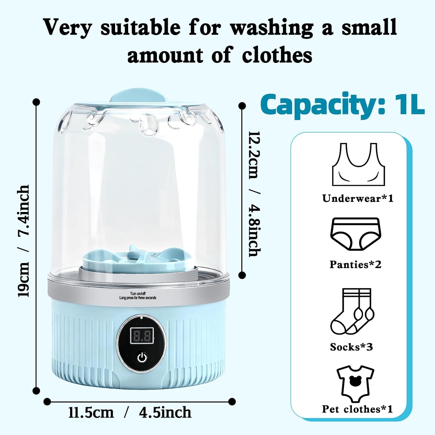2 Simple Washing Modes: This underware washing machine offers two timed settings—a 5-minute refresh cycle or a 10-minute deep clean. With one-touch operation, it’s effortless to use (Tip: Fill 2/3 with water for best results).