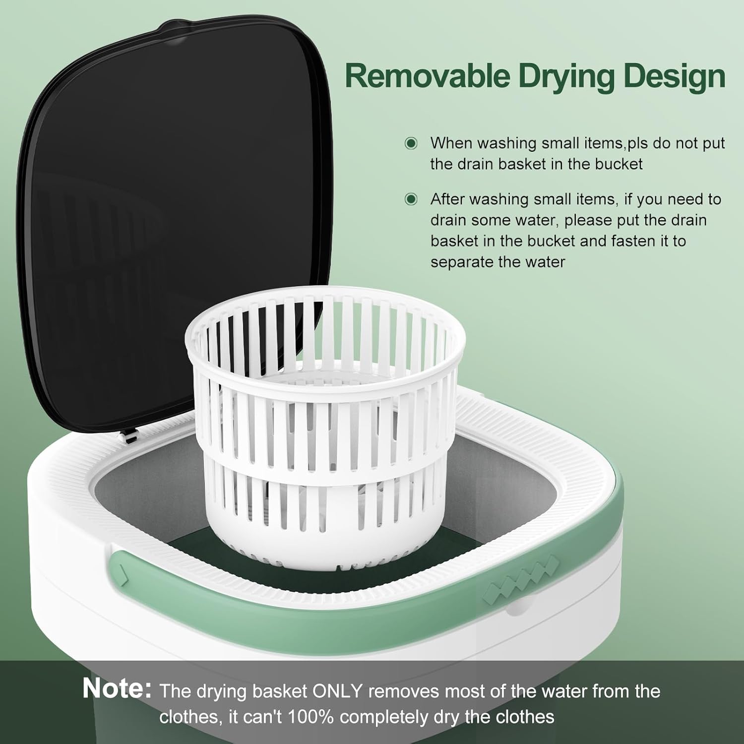 Portable Washing Machine, 12L Upgraded Mini Washing Machine With Spin Basket, Foldable Washer Cleaning for Underwear, Baby Clothes Socks and Small Items, Small Washer for Apartments, Dorm,RV (Green)