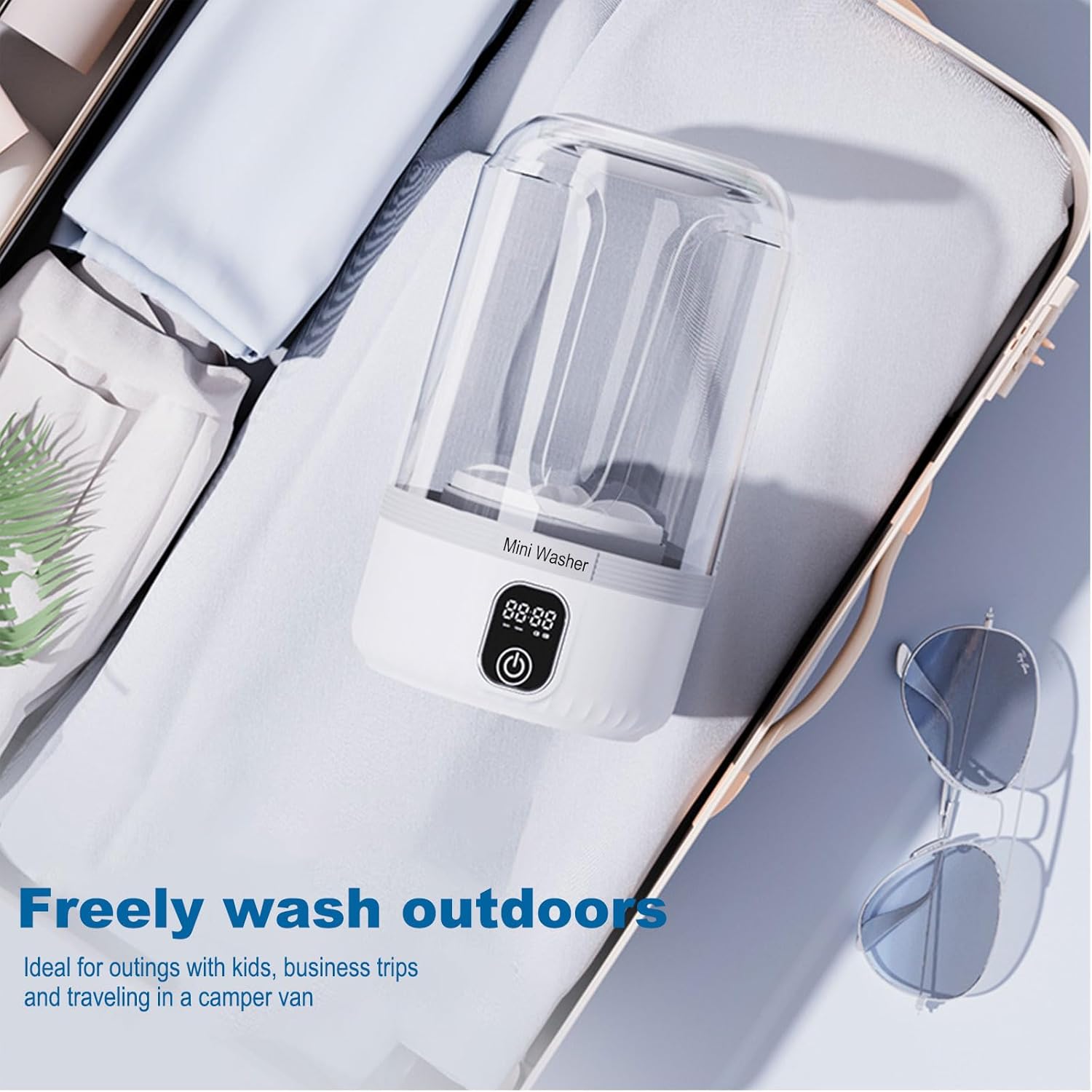 【Waterproof Design & Easy to Carry】The body is splash-proof and compact, ideal for travel, business trips, and camping. This portable washing machine enables the free-use experience of washing anywhere, anytime,【Notice: No dehydration or drying functions】