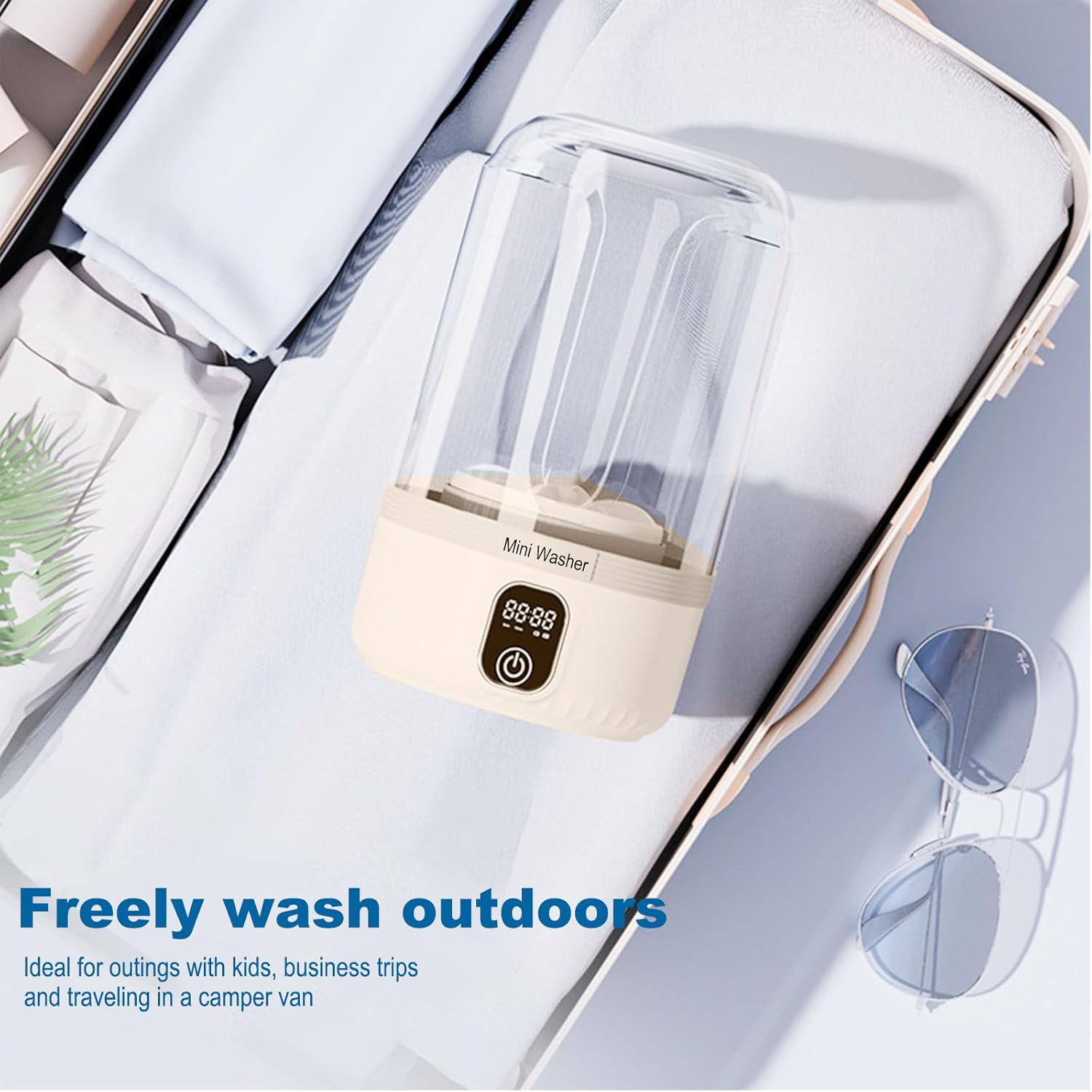 【Waterproof Design & Easy to Carry】The body is splash-proof and compact, ideal for travel, business trips, and camping. This portable washing machine enables the free-use experience of washing anywhere, anytime,【Notice: No dehydration or drying functions】