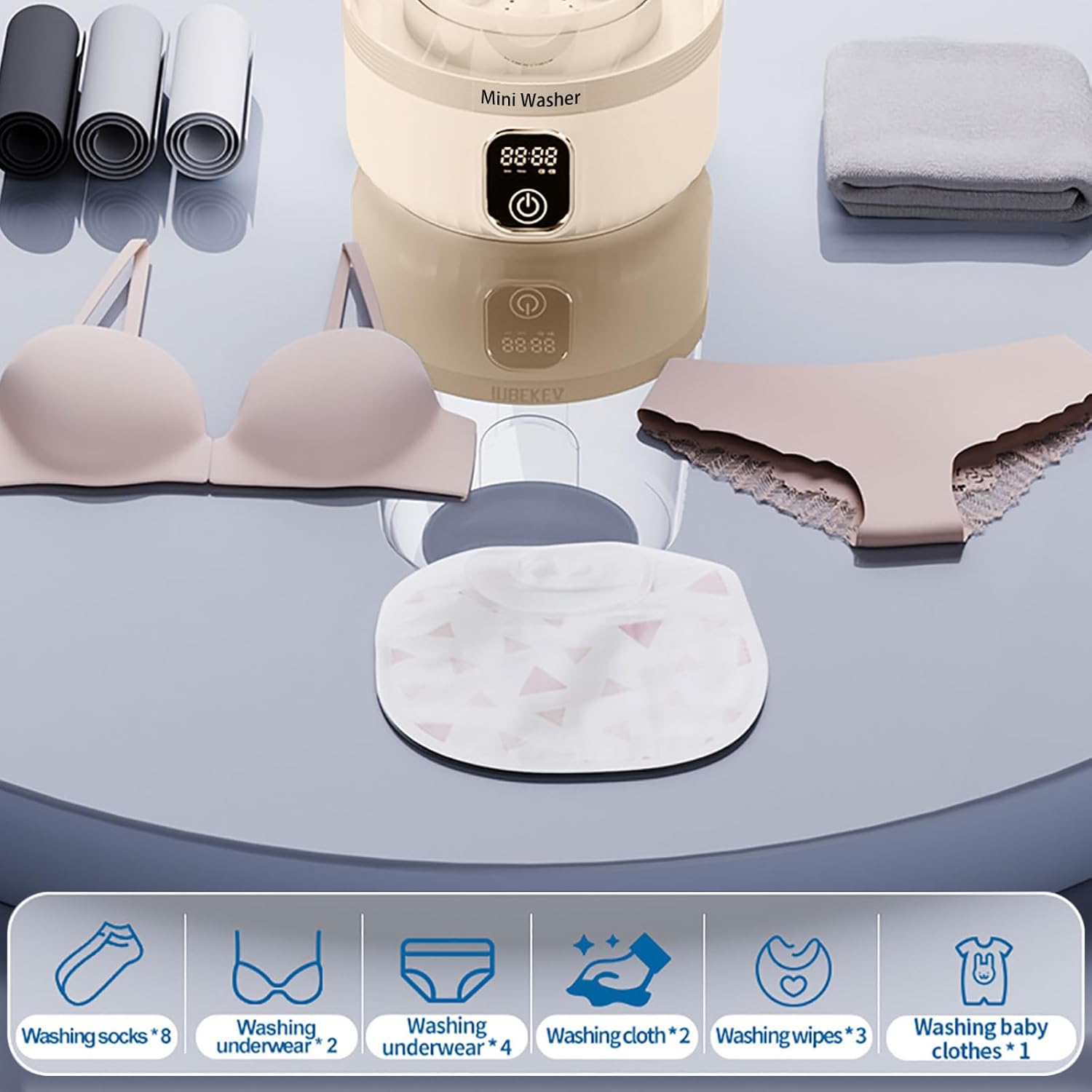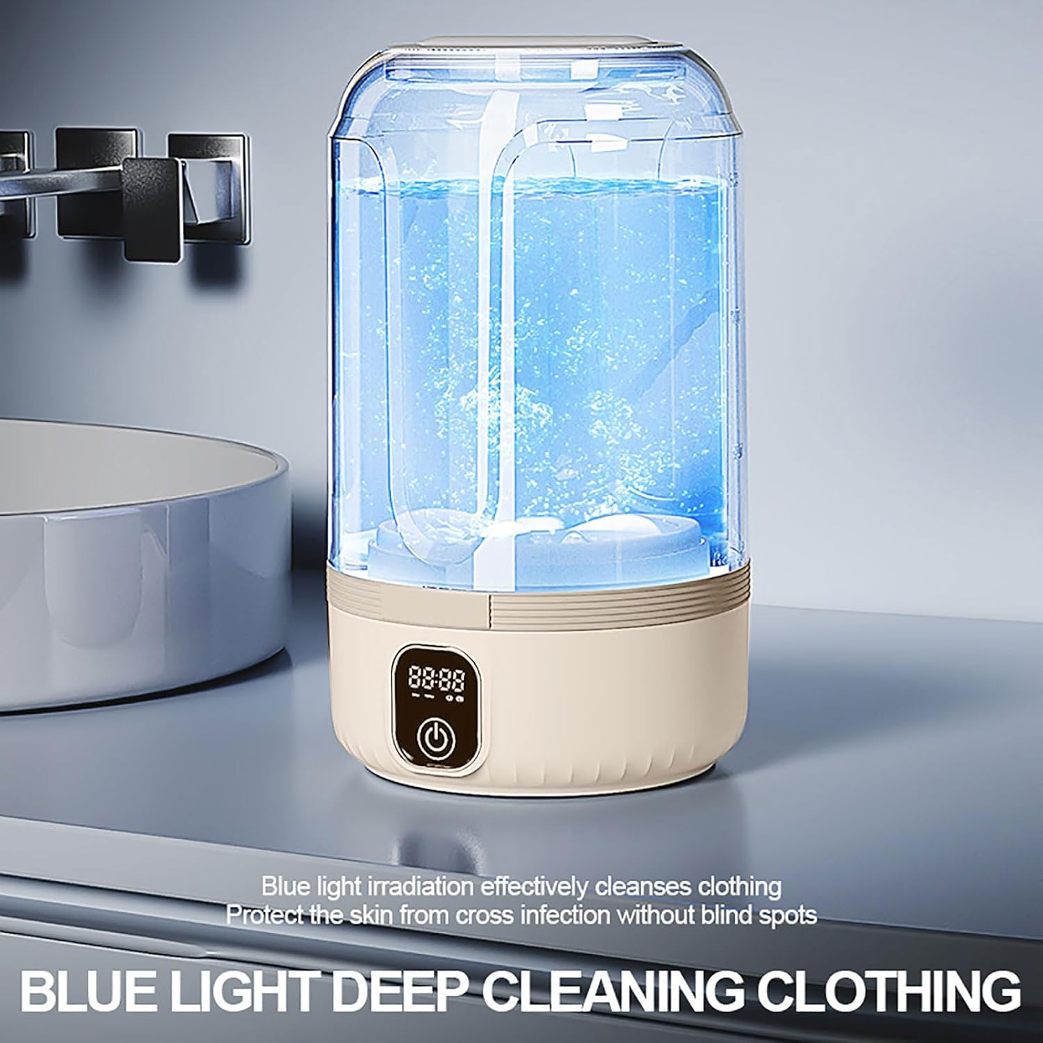 【Deep Cleaning Care】Small washing machine provides all-round imitation hand scrubbing,Combined with the blue – light function,it is very suitable for washing small clothes such as baby clothes, underwear and socks offering a safe and hygienic washing experience for intimate clothing and baby clothes.【Not recommended for large clothes】