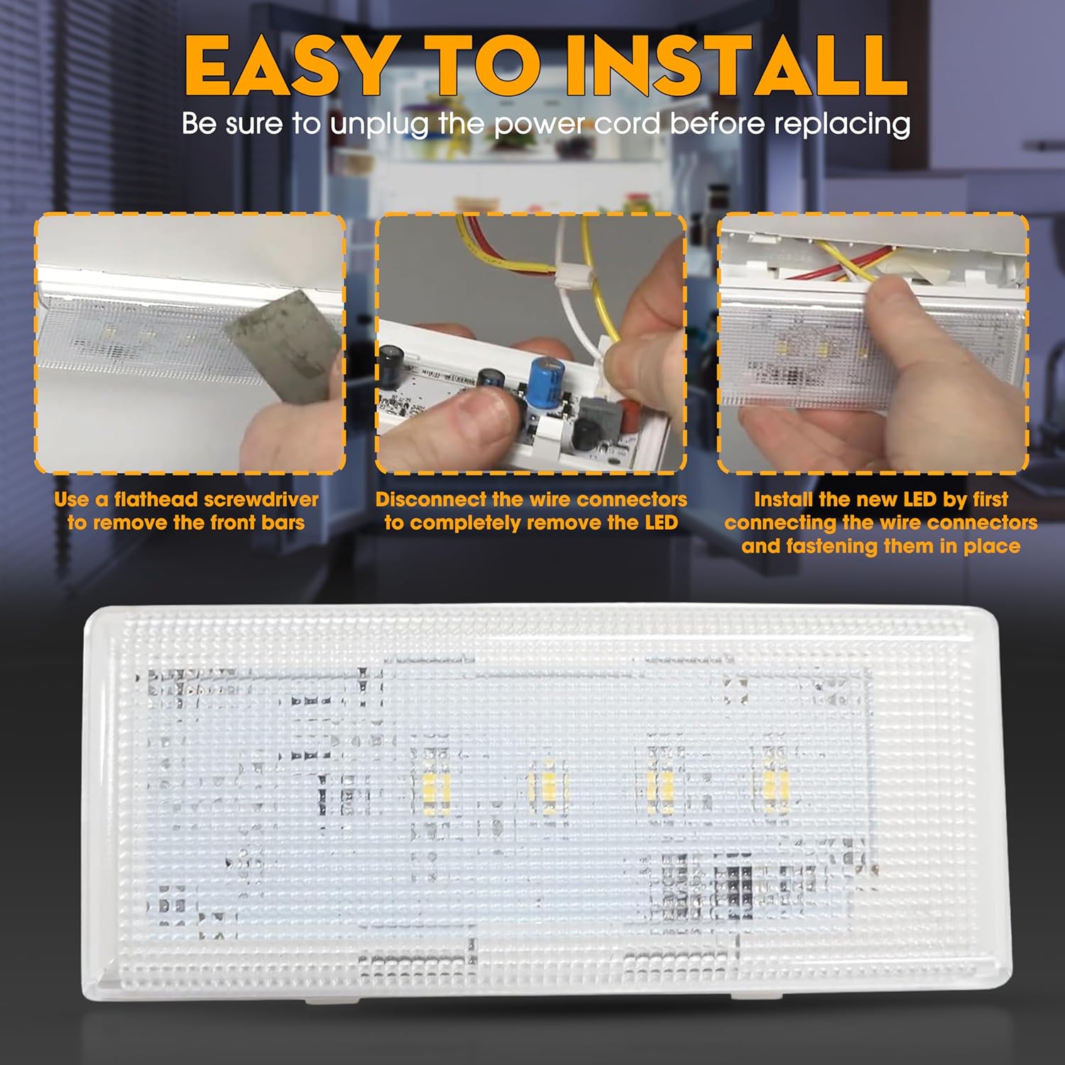 HIGH QUALITY: USE 2W LED and Waterproof treatment,so can led your refrigerator light work better than others. At the same time, aiming at the problem that the center easy to crush, the design of the product has been improved, and a reinforced washer is added at the center position to make the product more durable and have a long-term use.