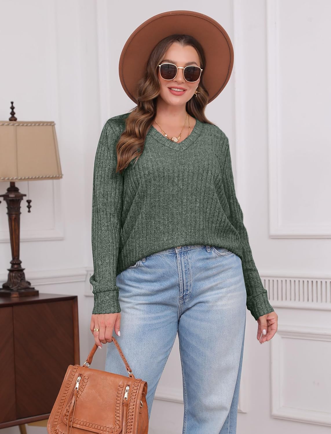 Sampeel V Neck Long Sleeve Shirts for Women Casual Fall Tops Lightweight Tunic Sweaters Fashion Clothes Loose Fit 2025