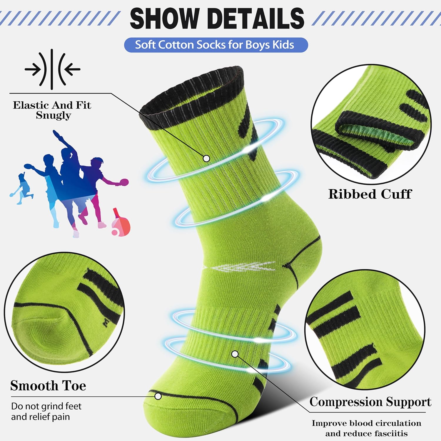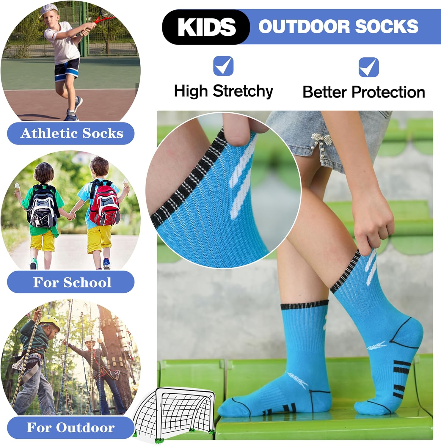 Sandsuced 6 Pairs Kids Boys Socks Athletic Basketball Sport Youth Crew Cotton Soft Breathable Socks for Outdoor