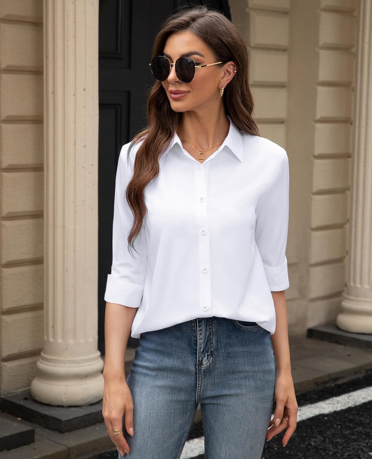 siliteelon Wrinkle Free Easy Care Women Button Up Shirt