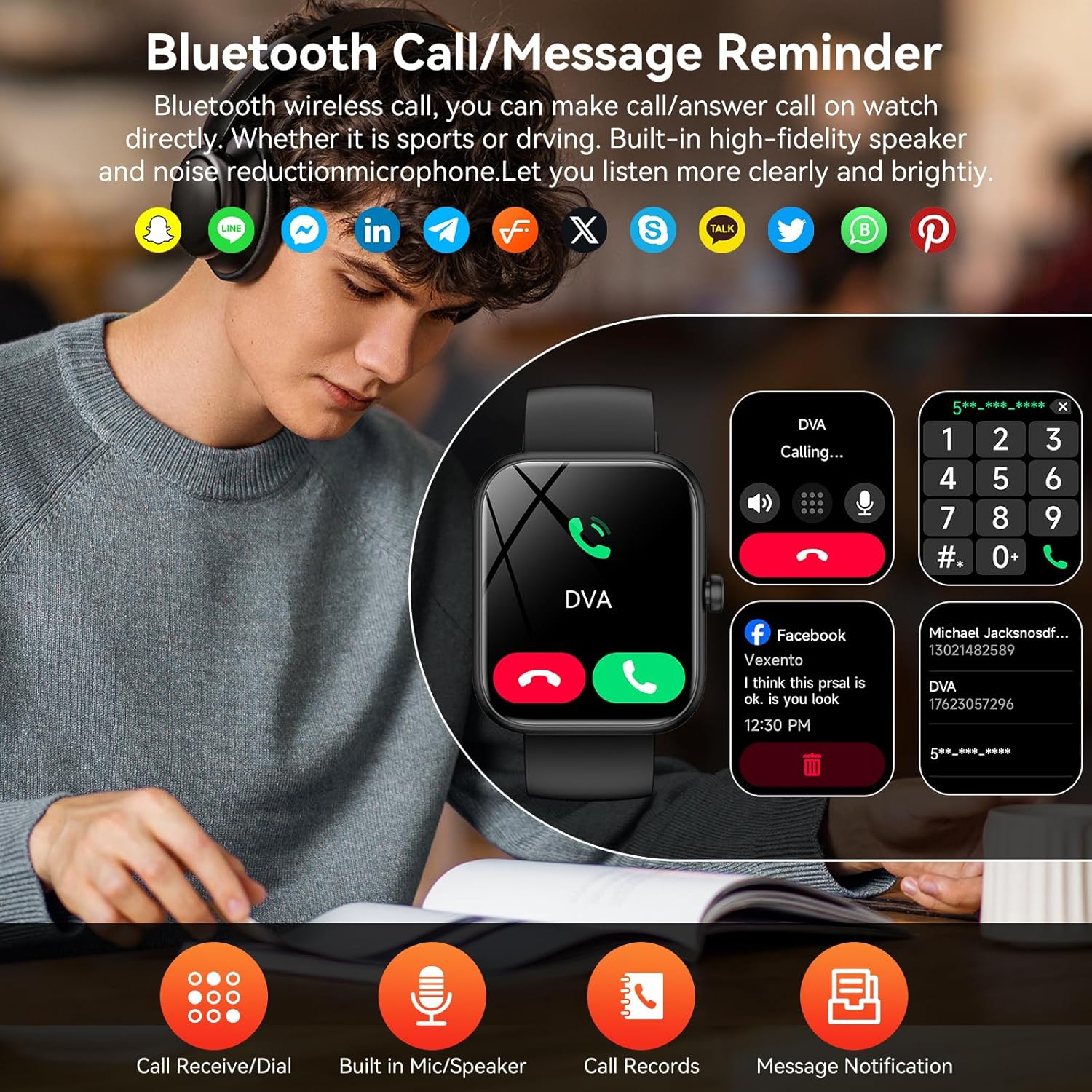 Bluetooth Call & Messaging Notification: Experience seamless Bluetooth 5.3 calling with HD speaker/mic on this smartwatch, receiving WhatsApp/Telegram/Facebook notifications on its 1.83″ touchscreen. The auto-wake feature activates when lifting your wrist, reducing phone reliance (Note: Message replies not supported)