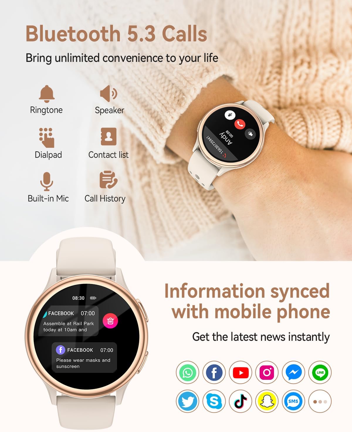 【Bluetooth Call & Smart Notification】:The Sanorum Smart Watch allows you to make and answer calls directly from your wrist via Bluetooth sync. Receive notifications for messages and apps like WhatsApp, Facebook, and Twitter in real time. Perfect for workouts, driving, or daily use, this smart watch for iPhone and Android keeps you connected without needing to check your phone constantly. (Note: Message reply is not supported.)