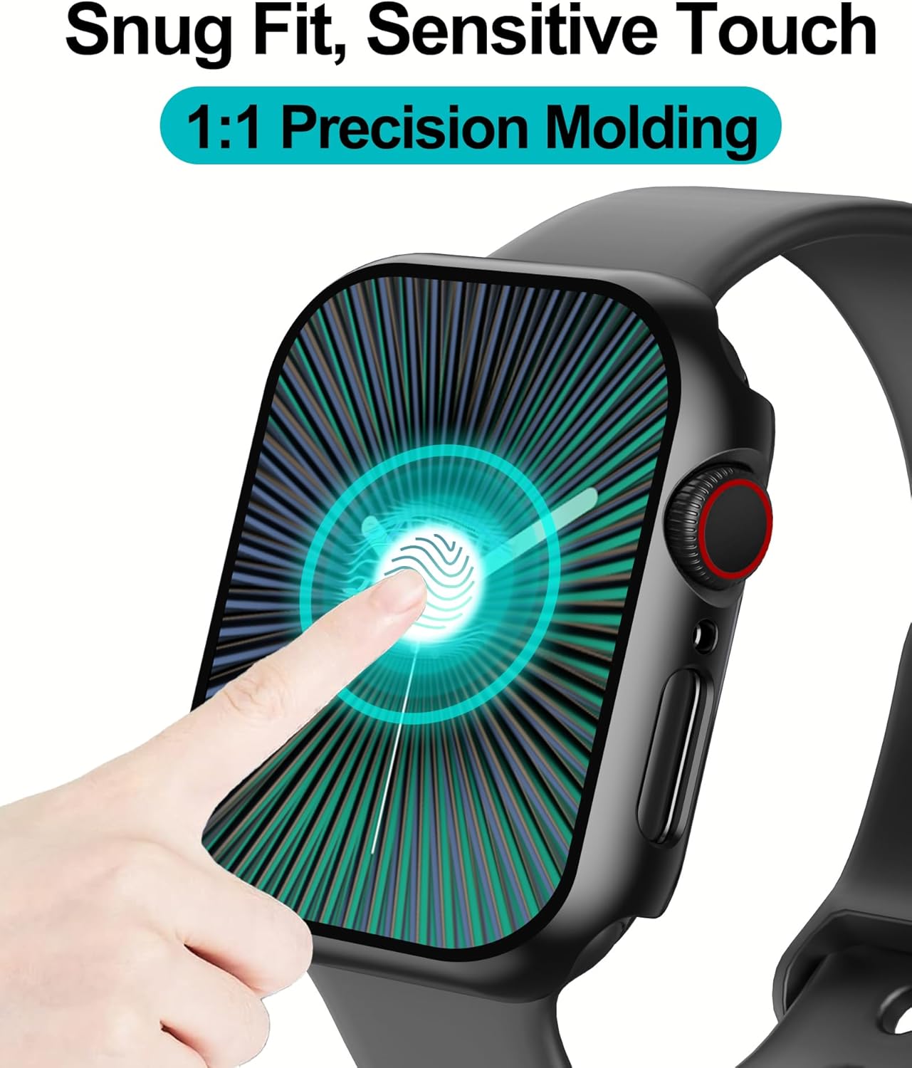 [Package Include]: 2-Pack black Screen Protector Case for Apple watch Series 9 (2023)/8 / 7 45mm, 1 pack of small soft cloth. This case is not waterproof. It is recommended to remove it before swimming or exercising. If moisture gets inside, just take off the case and dry it with a soft cloth.