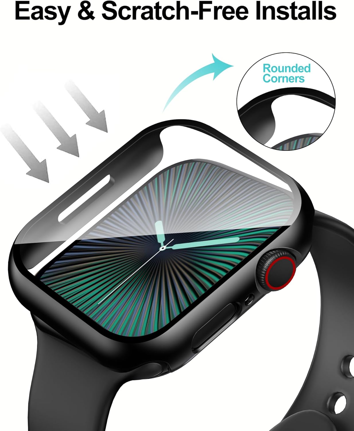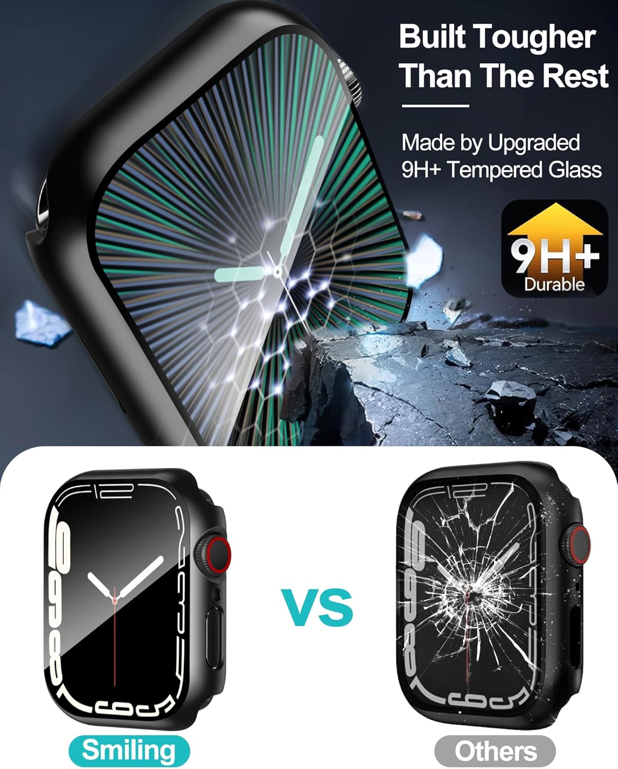 [2-in-1 Full Protection]: Durable Hard PC case with built-in 9H+ HD clear tempered glass screen protector, all around protects your Apple Watch 45mm from scratch, bumps, and accidental drops.