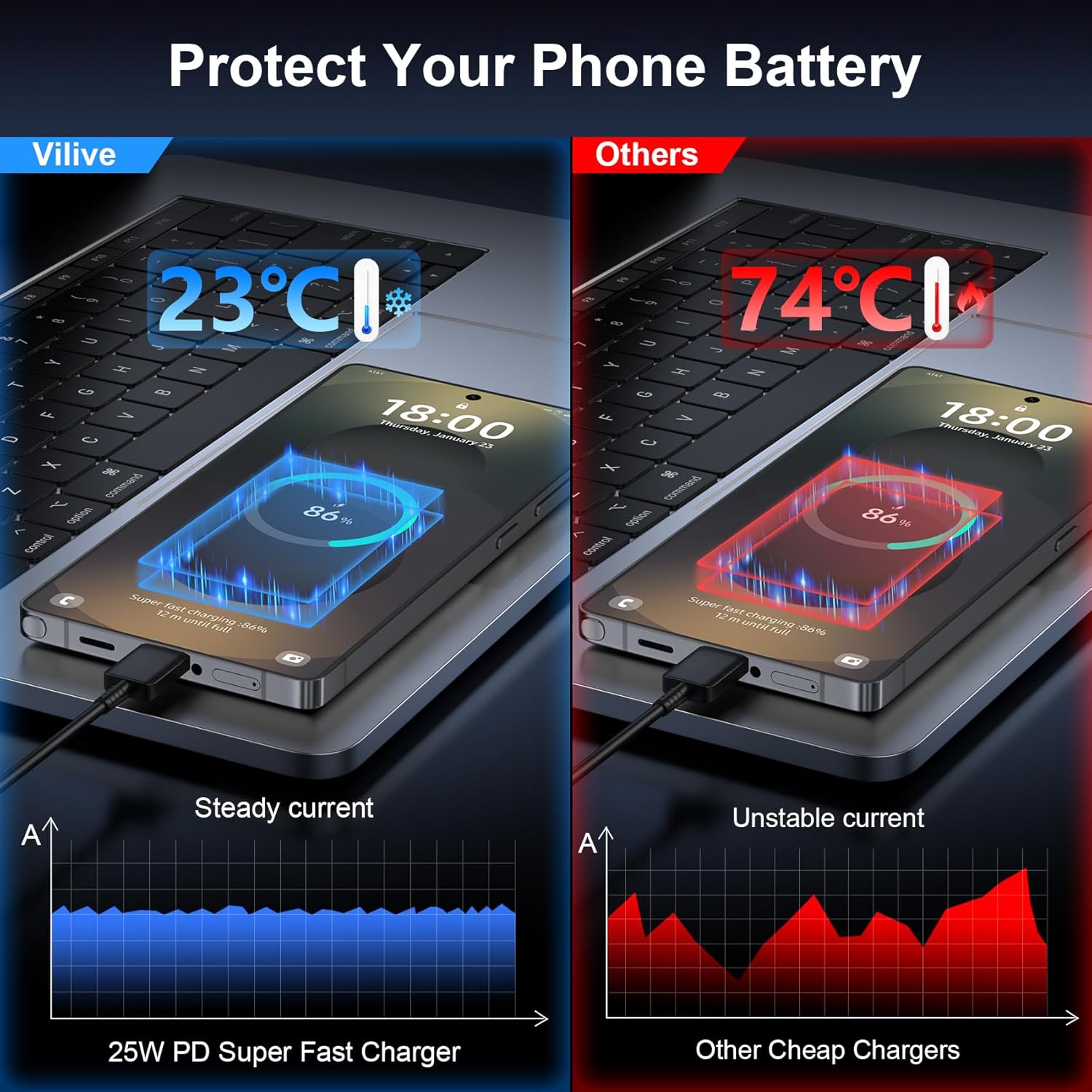 Safety Assurance: The Samsung galaxy S25 S24 S23 ultra super fast charger is built in intelligent chips, which can protect your devices against damage caused by short circuit, over-current, over-voltage, over-heating, and over-charging issues. Automatically stops charging when battery capacity is full to ensure your device safety and longevity.