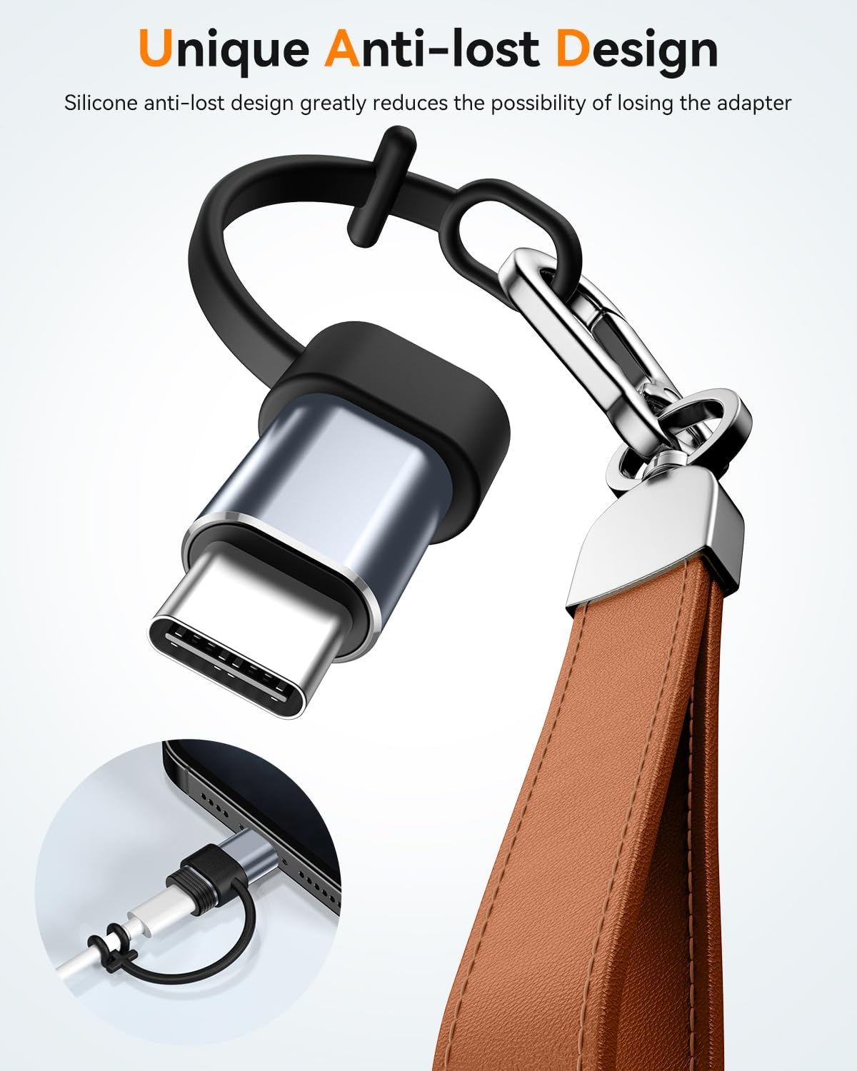 Compact and Portable: Engineered for life on the move, this ultra-portable Lightning to USB C adapter features a lightweight aluminum design that slips effortlessly into pockets, bags, or travel kits – perfect for airports, hotels, and public charging stations. The included non-slip silicone sleeves securely grip your cable while preventing loss, making it ideal for organized storage in purses, laptop cases, or car compartments. With its space-saving clip-free design, you’ll always have instant charging conversion wherever your day takes you