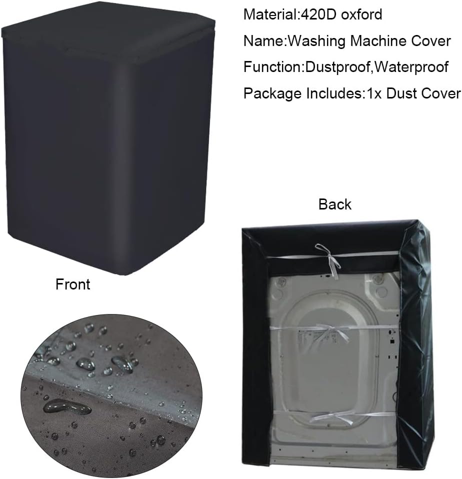 Feature: Color:Black Material:420D oxford Keeping your washing machine clean and dust free Easy to use,design with two tie that go around the back Package includes: 1xWashing Machine Cover.