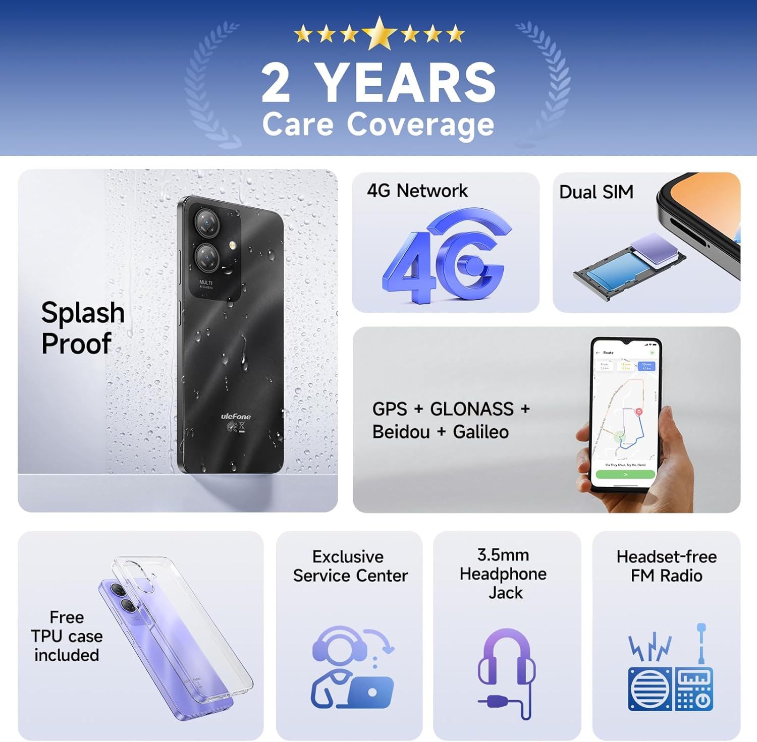 【4G Dual SIM / Fingerprint + Face ID】: The Ulefone Note 21 supports global frequency bands and is compatible with Dual SIM Dual Standby, supports 2 NANO SIM cards or 1 NANO SIM card + 1 TF card. Integrated multiple functions, ✔️Side Fingerprint, ✔️Face ID, ✔️2.4G/5G WiFi, ✔️GPS + Glonass + BeiDou + Galileo, ✔️FM radio, ✔️3.5mm headphone jack and ✔️Exclusive Service Center App. But NOT for AT&T, Cricket Wireless, Verizon, Sprint, Straight Talk, Boost etc..