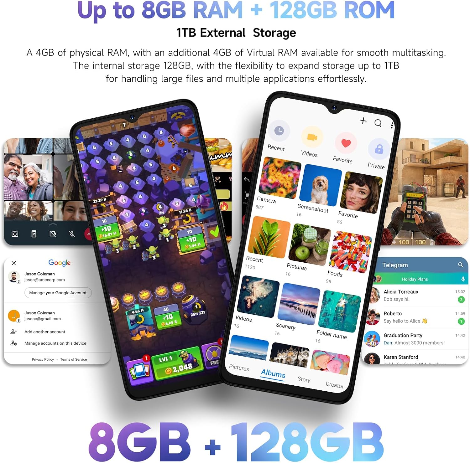 【Octa-core Processor, 8GB+128GB/1TB SD】: The Ulefone Note 21 is equipped with a powerful Unisoc T606 octa-core processor, faster processing, less delay. It has 128GB ROM + up to 8GB RAM (4GB RAM + 4GB virtual RAM) + 1TB SD expansion, making downloading and sharing a breeze.