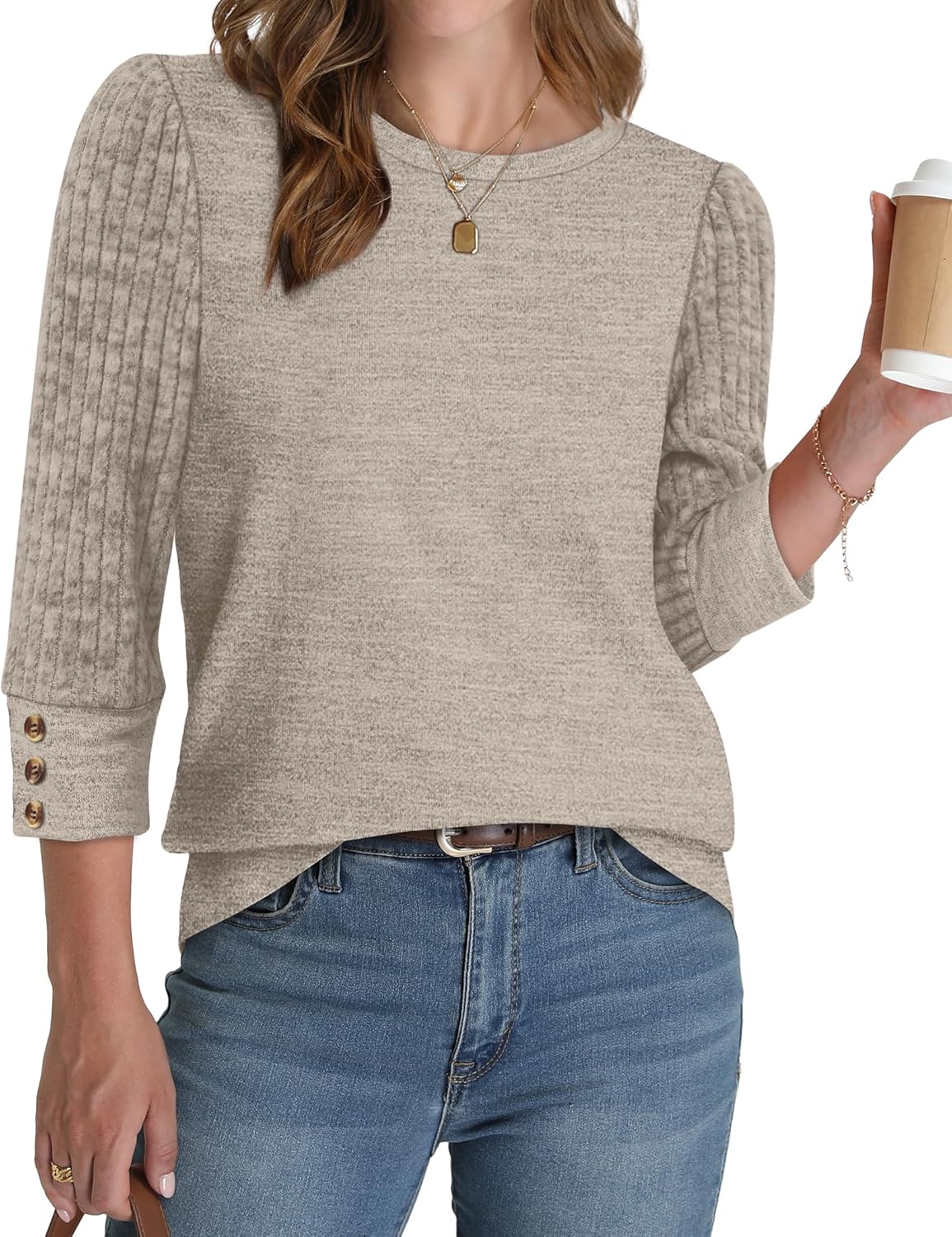 Buy WIHOLL Long Sleeve Shirts for Women Lightweight Sweaters 3/4 Length Sleeve Fall Outfits 2025 Winter Clothing Dressy Casual online from amazon or ebay or walmart WIHOLL Long Sleeve Shirts for Women Lightweight Sweaters 3/4 Length Sleeve Fall Outfits 2025 Winter Clothing Dressy Casual