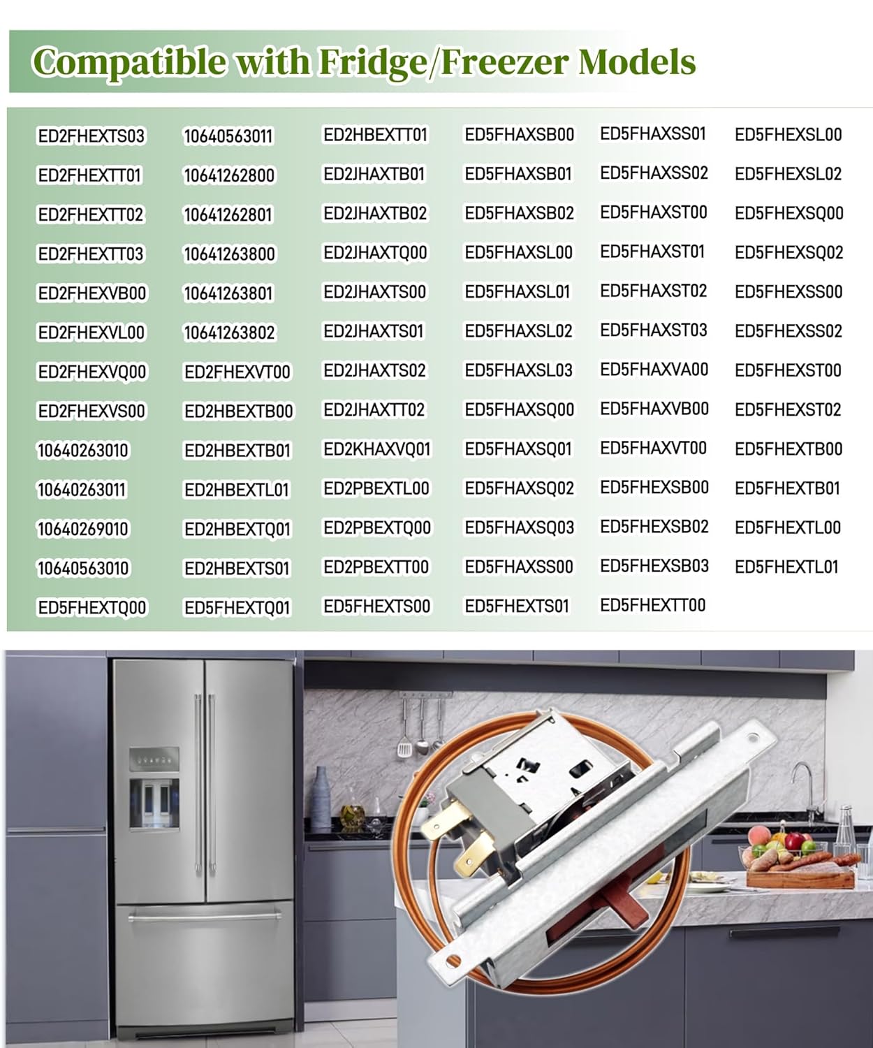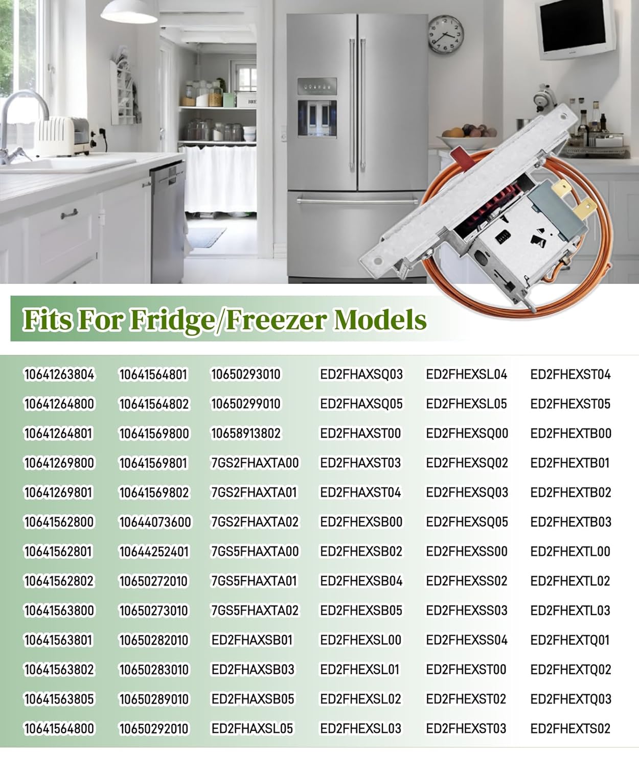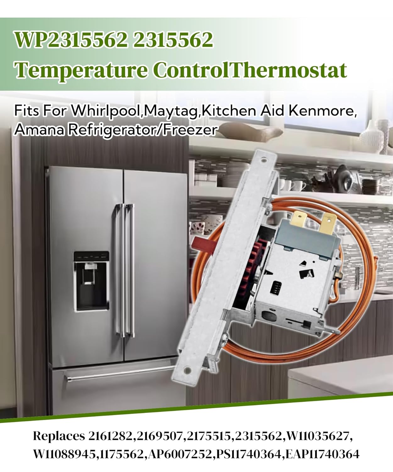 Compatibility:This 2315562 Refrigerator temperature control thermostat Fits For Amana,Kenmore,KitchenAid,Maytag,Whirlpool Models,include 10650272010,10650273010,10650282010,10650283010,10650289010,10650292010,10650293010,10650299010,10658913802,7GS2FHAXTA00,7GS2FHAXTA01,7GS2FHAXTA02,7GS5FHAXTA00,7GS5FHAXTA01,7GS5FHAXTA02,ED2FHAXSB01,ED2FHAXSB03,ED2FHAXSB05,ED2FHAXSL05,ED2FHAXSQ03,ED2FHAXSQ05,ED2FHAXST00,ED2FHAXST03,ED5JHAXTL00,ED5JHAXTQ00,ED5JHAXTQ01,ED5JHAXTS00,ED5JHAXTS01