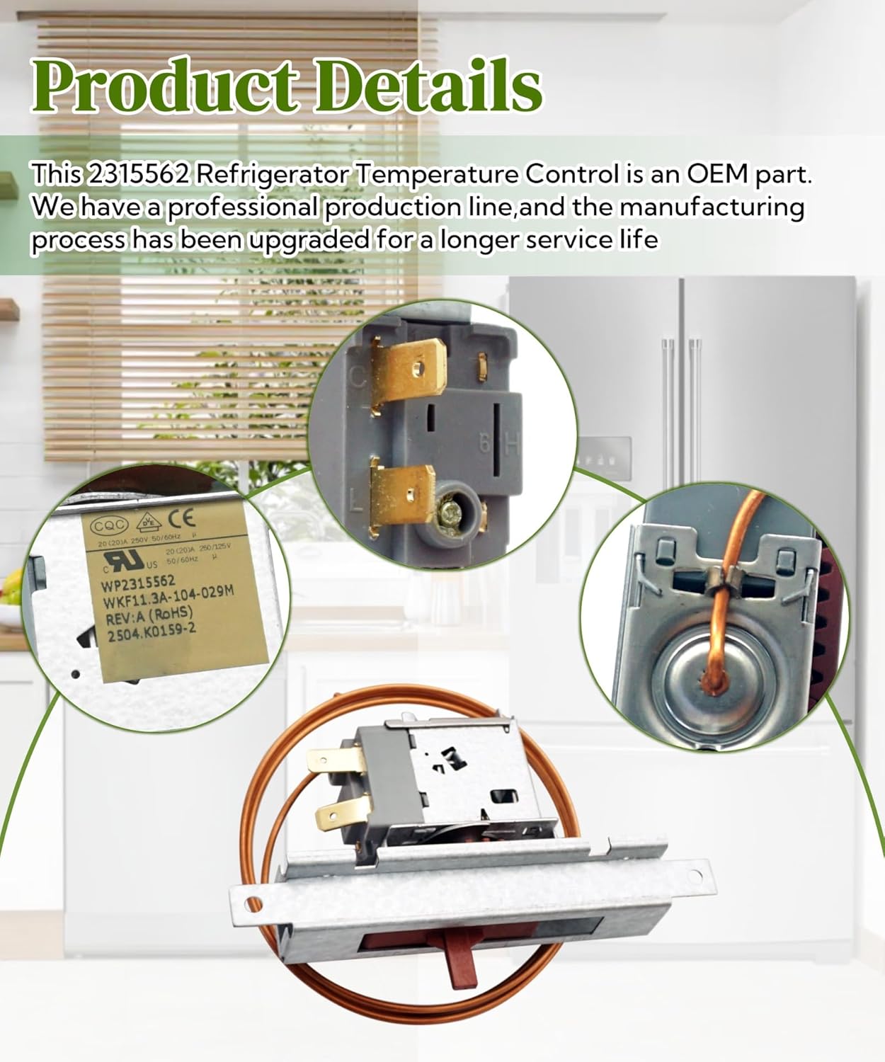 Excellent Quality:This 2315562 Refrigerator Temperature Control is an OEM part.We have a professional production line,and the manufacturing process has been upgraded for a longer service life.The performance of the product is tested before leaving the factory to ensure that it can work properly